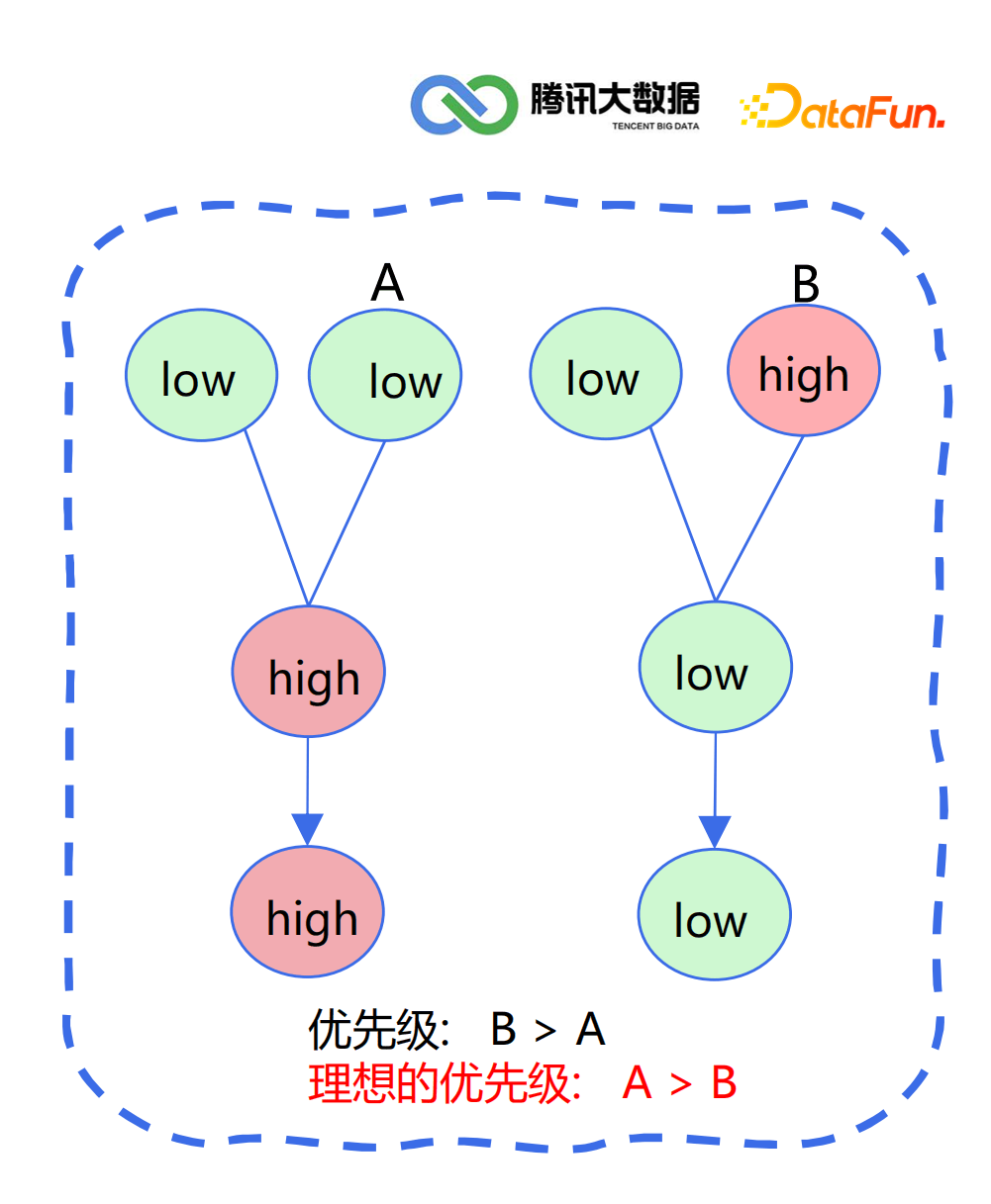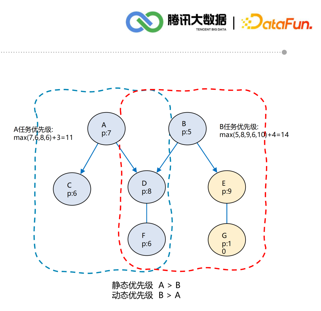 延迟时间(紧迫性):延迟越久,优先级越高 静态优先级(关键性):业务关键任务 周期(频繁性):分钟>小时>天>周>月 任务类型(快捷性):check(检查)>sync(同步)>calculating(计算) 链路(传递性):下游任务链路深度