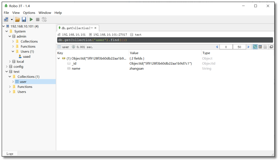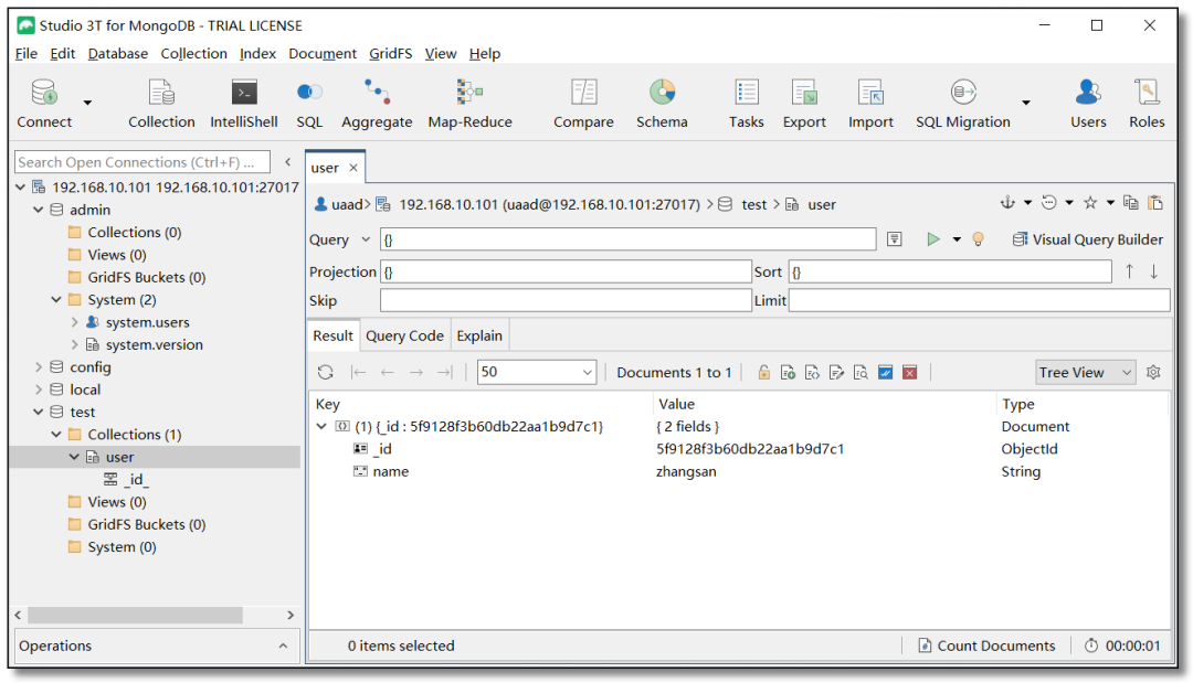 超过 100,000 的开发人员和数据库管理员使用 Studio 3T 作为 MongoDB GUI 的首选。Studio 3T 属于收费工具,30 天的免费试用期,Studio 3T 具有更多更强大的功能并提供企业支持服务,支持副本集、独立主机和分片集群连接,支持导入导出,SQL 查询,语法填充,支持 MongoDB 4.0+ 等等。适用于 Windows,macOS 和 Linux。