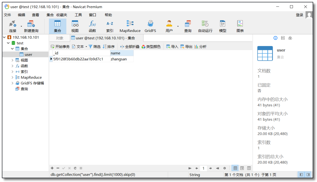 老牌的数据库管理工具,支持多种数据库的集成,已集成 MongoDB 类型,属于付费型管理工具。好处是用会了一个 DB 版的 Navicat,所有 DB 版都会很顺手,维持一套操作习惯,如果再肌肉记忆一些快捷键,会更加高效。