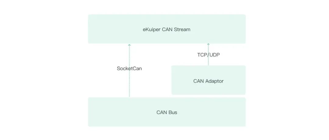 通过 socketCan 直接连接到 CAN Bus 。SocketCAN 使用 Berkeley socket API、Linux 网络协议栈,并将 CAN 设备驱动程序实现为网络接口。一旦将 CAN Bus 连接到 Linux 系统,用户就可以获得 CAN 网络接口。在 eKuiper 中,用户可以通过指定 CAN 网络接口和 DBC 文件路径来创建 CAN 流。然后,可以对 CAN 流应用任何规则来处理 CAN Bus 数据。