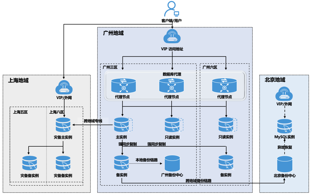 2. 异地备份保障:该架构采用异地备份技术,可以将数据自动异地备份到多个地域,提供备份的持久存储,并在主库数据发生灾难性故障时,能够及时恢复数据并处理业务,从而确保数据的安全性和完整性。