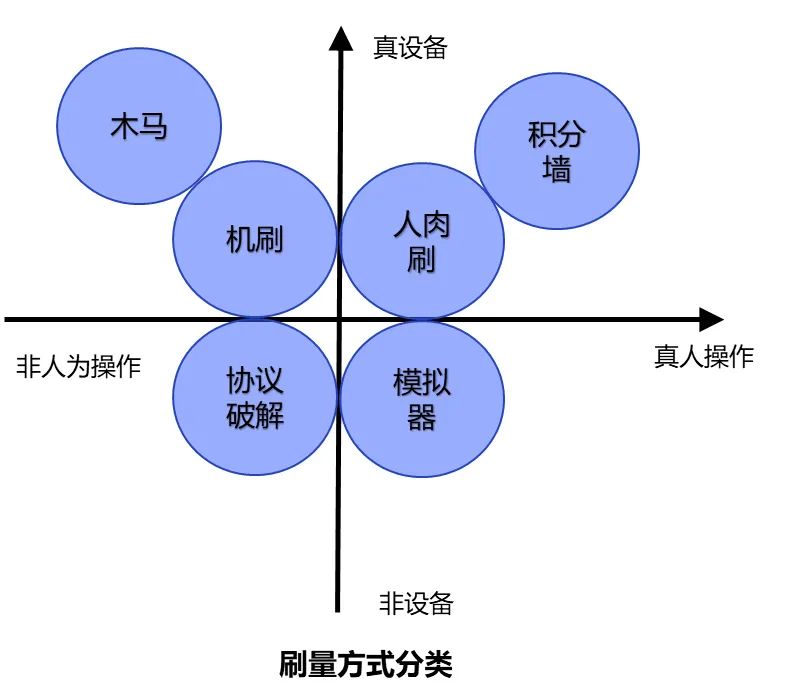 黑产刷量方式大致可分为三类:模拟真人刷、接口刷、真人刷。