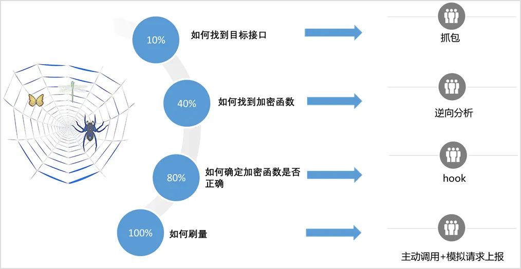 接口刷,即通过协议刷量,通常是通过破解请求中的加密算法从而来自由构造请求,结合http代理等来达到刷量的目的。