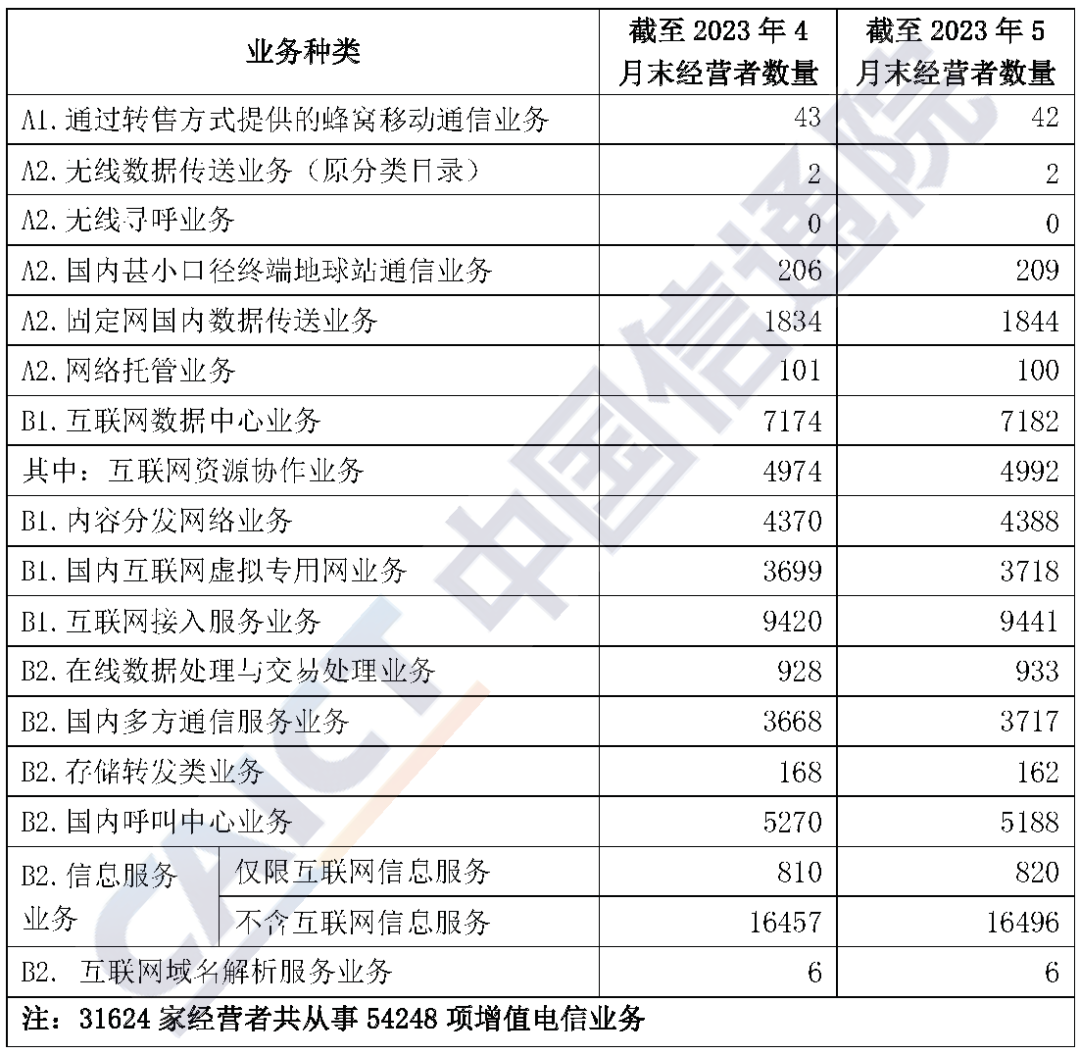 表1 截至2023年5月末跨地区各类增值电信业务经营者数量