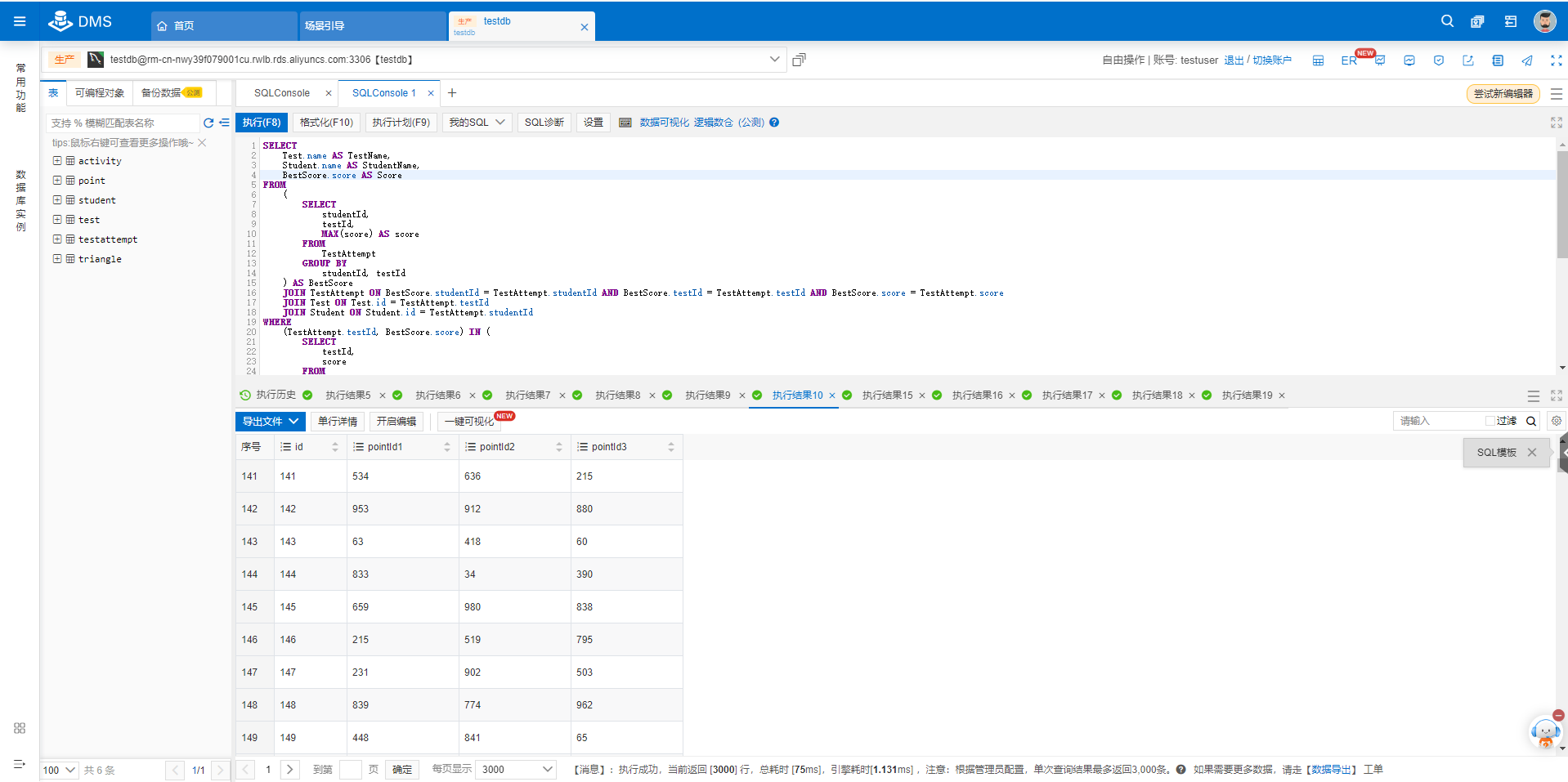 然后从 Test 表和上一步得到的分数排名结果中 JOIN 出每个考试对应的前三名考生的信息;
