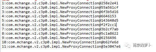 main {// 获取数据库对象DataSource ds = new ComboPooledDataSource();// 获取数据连接对象for (int i = 1; i <= 11; i++ ) {Connection conn = ds.getConnection();System.out.println(i + ":" + conn);if(i == 5) {conn.close();}}}