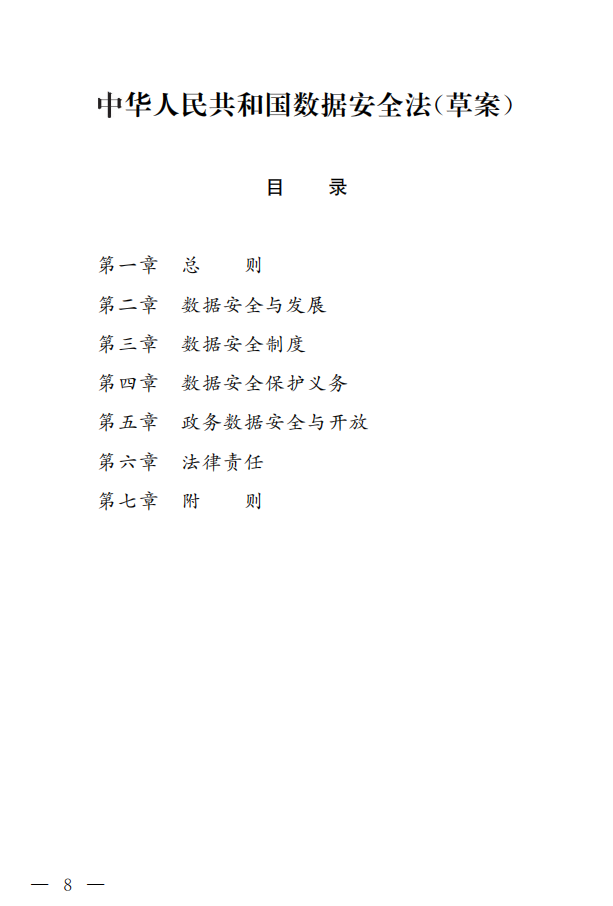 数据安全涉及各行业各领域,涉及多个部门的职责,草案明确中央国家安全领导机构对数据安全工作的决策和统筹协调等职责,加强对数据安全工作的组织领导;同时对有关行业部门和有关主管部门的数据安全监管职责作了规定。(草案第六条、第七条)
