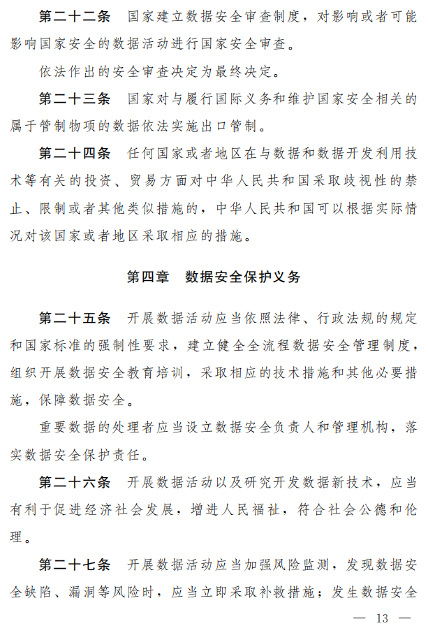三是,开展数据活动应当加强数据安全风险监测、定期开展风险评估,及时处置数据安全事件,并履行相应的报告义务(草案第二十七条、第二十八条)。