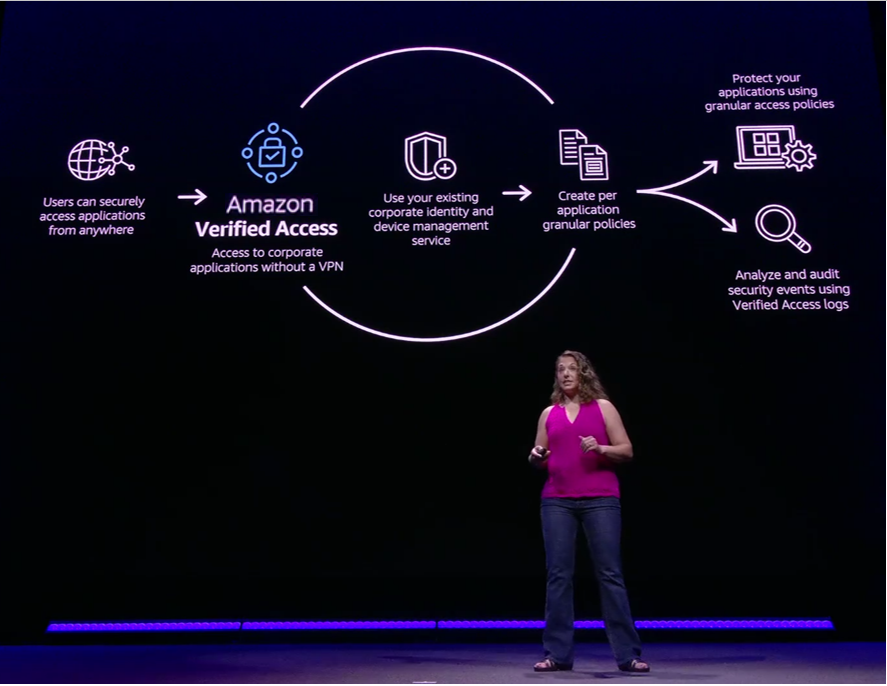 Becky 以 Zero Trust 零信任为话题,对目前主流的安全合规理念做了进一步延伸。Amazon IAM 为全球每秒10亿次 API 调用提供了认证保护,同时今年4月底亚马逊云科技最新正式可用的 Amazon Verified Access 服务还能助力企业构建 Zero Trust 自动网络访问及安全防护能力。