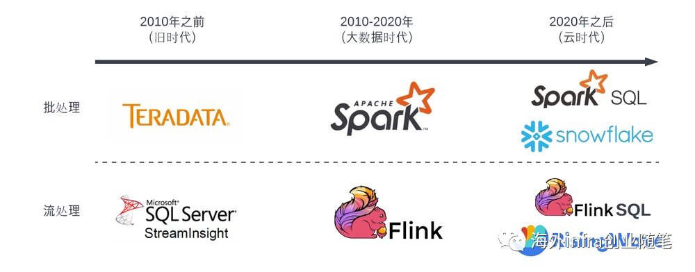 想要创新,必定会面对质疑。在创业之初(哪怕到现在),我们面对的最多的问题便是RisingWave跟Flink等现有流处理系统是什么对比。我觉得用一幅图就可以说清楚了:Flink就是流处理版Spark,Flink SQL就是流处理版Spark SQL, 而RisingWave就是流处理版Snowflake。Snowflake通过简洁的接口以及全新的架构开辟了批处理的新范式,而RisingWave也希望用同样的方式开辟流处理的新范式。同时,RisingWave的目标并不是取代Flink,而是在市场中寻找到自己合适的用户画像。这点也是跟目前Snowflake与Spark SQL(其实说AWS EMR更加恰当)共存的关系一样:Snowflake与EMR都通过SQL这种方式来去触达广大用户,而EMR自带的底层基于Java(或其它语言)的编程框架可以更好的服务于业务逻辑相对复杂、需要更强编程能力的企业或团队,而Snowflake作为基于SQL的数据平台(其实这两年推出的Snowpark项目也开始提供Java、Scala、Python等编程接口),会更好的服务于业务逻辑相对简单、需要快速迭代产品的企业或团队。当然,还有不少人会问,为什么我们选择从零开始开发RisingWave,而不是基于现有的一些系统。这个问题我觉得还是单独开一篇文章讨论吧。