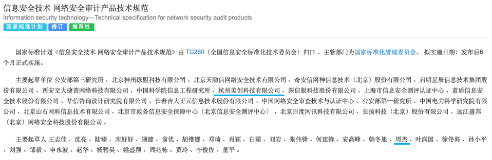 美创科技作为主要起草单位,公司CTO周杰基于对数据库审计技术的理解和产品实践,积极参与标准研制工作。