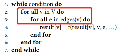 在LiveGraph的基础上,Teseo认为不仅要考虑某个点邻域的寻址与扫描问题,也要考虑扫描不同邻域时的时间消耗。Teseo总结图分析算法如下图,认为扫描所有邻域的图分析算法有两类:一是顺序扫描所有邻域,二是随机访问所有邻域。前者典型如PageRank,后者典型如SSSP。而类似LiveGraph这种邻接表的形式无法很好处理不同邻域的扫描。