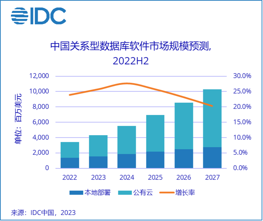 图说:IDC预测2027年中国关系型数据库市场将突破100亿美元