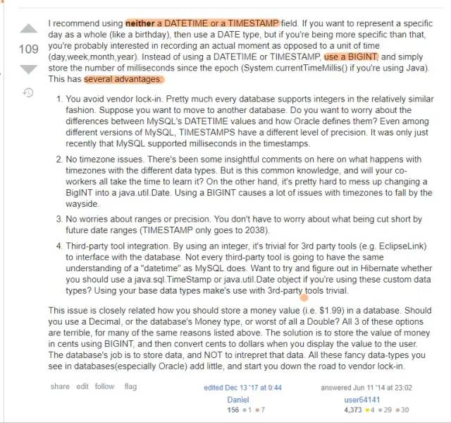 对于需要存储更小粒度的日期和时间可以使用DOUBLE或BIGINT,当然不是存储小粒度也可以使用BIGINT
