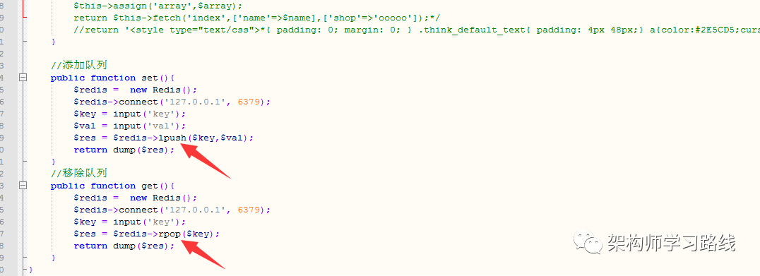 顾名思义,先入队,后出队;先把数据丢到消息队列(入队),后根据相应的key来获取数据(出队)。