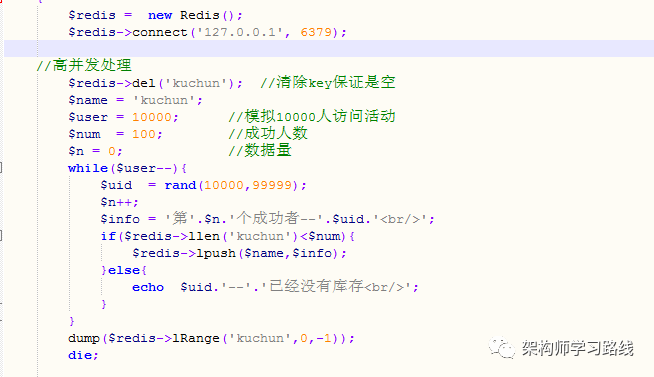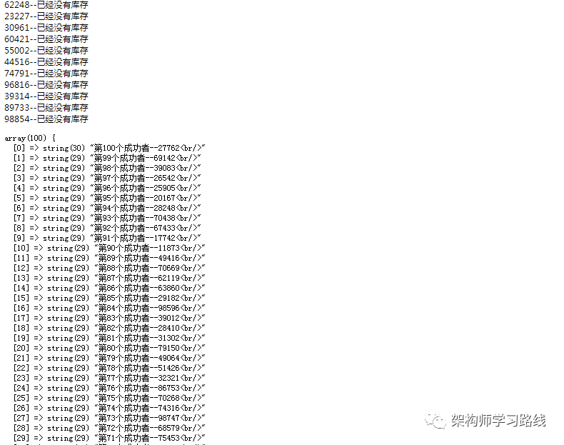 这段代码解决瞬间处理10000个用户同时操作数据库,我们就可以在redis中获取到成功用户的id,只对这100个用户做相应的操作,上面的情况正常情况下会有列表中只会存100个用户,但实际情况中不是while循环,而是多用户同时访问这样的代码: