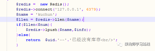 比如这里我先把库存(可用库存,这里我强调下哈,一般都是商品详情页抢购,后来者进来看到的库存可能不再是后台系统配置的10个库存数了)放入redis队列: