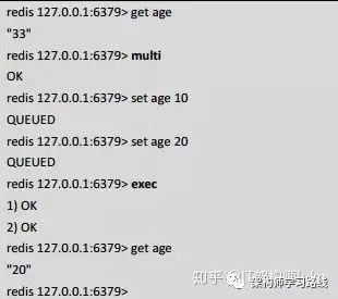 这个例子可以看到:两个set命令发出后并没有立即执行而是放到队列中,redis接受到exec命令才开始执行。