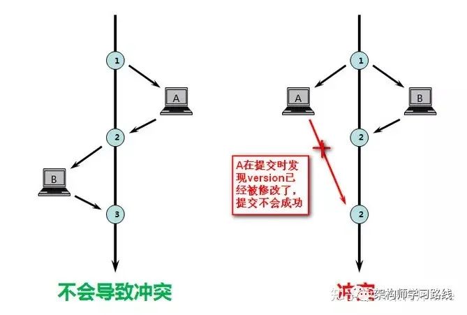 大多是基于数据版本的记录机制。什么是数据版本?就是为数据增加一个版本标识,即为数据库表添加一个version字段,当读取数据时,把数据库版本一同读出,当做了修改后,将数据库版本+1,同修改一起提交。如果提交数据的版本号 >数据库当前版本号,提交成功。如图: