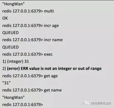 为age +1的命令成功,因为anme是string类型的,所以不能做加操作,命令有一个失败也不会回滚,age的值已经被修改了
