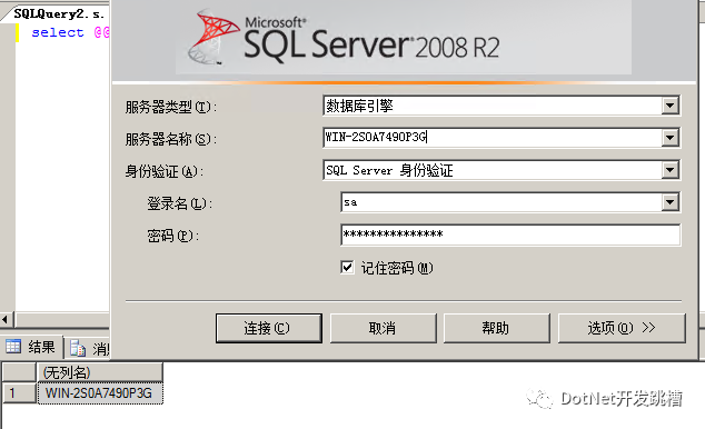 2,使用服务器名称登录数据库,不清楚服务器名称的使用下边语句查询