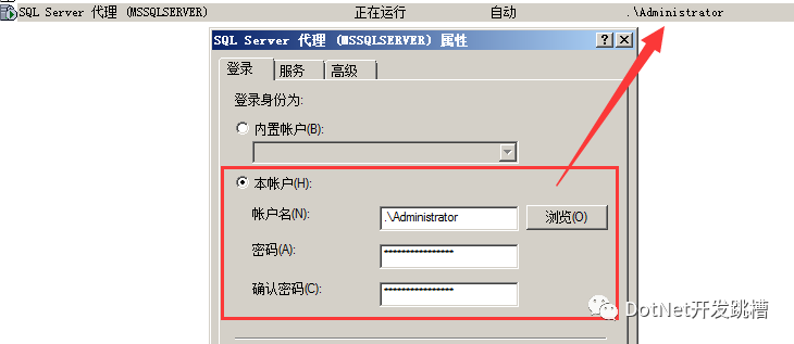 同时要设置 sql Server代理服务的访问账户也要是:Administrator,否则到时候会因为访问权限问题导致发布失败!