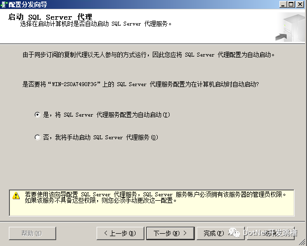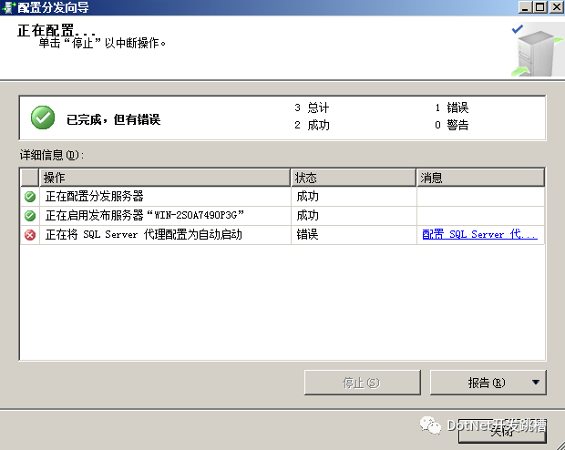 最后遇到一个错误,下图所示,意思是需要将 sql代理服务设置成自动启动