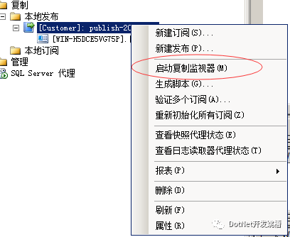 选择发布服务-->启动复制监视,可以查看数据同步日志