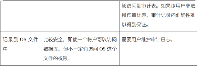 目前常用的记录审计内容的方式有两种:记录到数据库的表中、记录到 OS 文件中。这