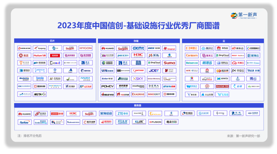 本图谱由第一新声基于市场公开数据,并通过调研问卷、电话访谈、记者采访等多种方式,收集企业数据信息;同时邀请甲方企业CXO高管、产业专家、一线投资机构合伙人等专家担任专家顾问,筛选出受资本市场关注、受客户认可的高科技、高成长、好口碑、稳交付、跨周期的基础设施优秀厂商。