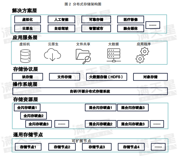 分布式混闪:指各存储节点由SSD、HDD等构成。尽管性能不及分布式全闪存,但可针对场景需求进行个性化定制,从而最大程度上均衡成本和性能,是目前主流的分布式存储产品。