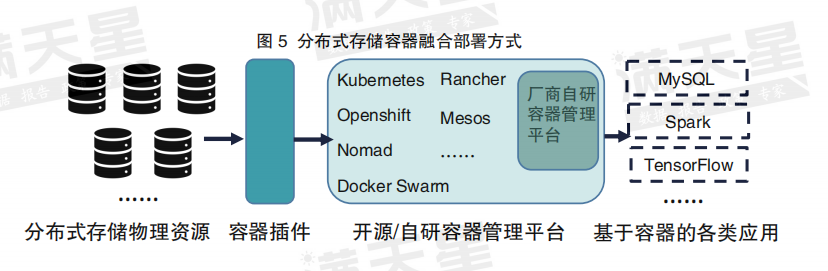 容器融合:面对容器化持久化存储日益增长的需求和Kubernetes特有的管理架构,专门针对此类场景的分布式存储产品也开始涌现。容器融合的分布式存储产品对 K8s集群内的存储资源进行整合与管理,不仅可以通过与容器融合部署降低成本,简化系统架构,还可以无缝融入 K8s 原生的开发和运维体系,更加符合 K8s 运维团队的使用习惯。