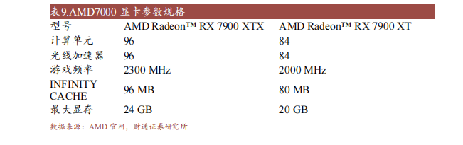 AMD 最新于 2022 年推出 AMD Radeon RX 7000 系列显卡,采用 AMD 最新RDNA 3 计算单元,具有光线追踪和人工智能加速功能。7900 系列创新性地采用了小芯片技术的游戏 GPU,其 AMD Radiance Display 引擎和 DisplayPortTM2.1 的强强联合可以带来 12 位 HDR 和 REC2020 色彩空间的完全覆盖,最高可达8K 165Hz。