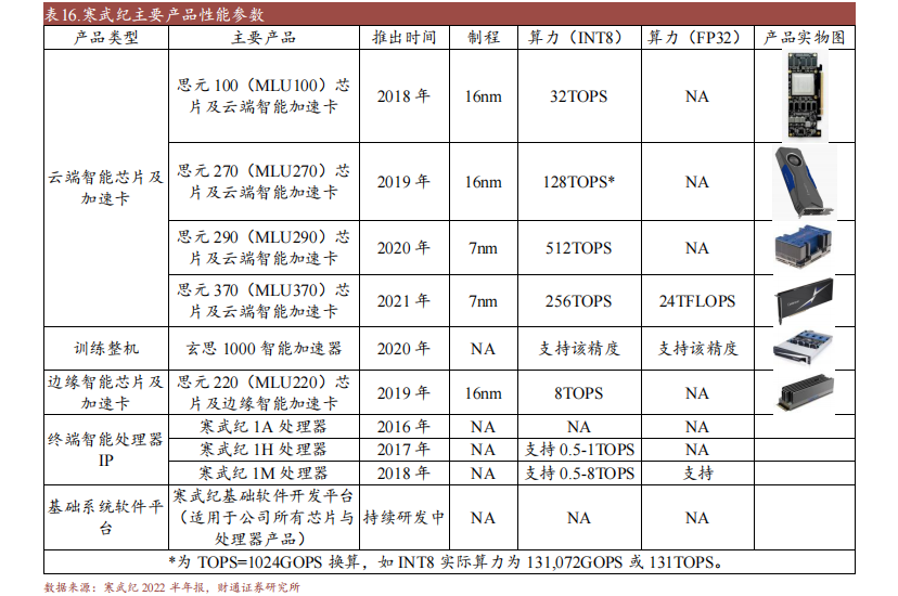 寒武纪自 2016 年成立以来一直专注于人工智能芯片产品研发与技术创新,致力于打造人工智能领域的核心处理器芯片。公司主要提供云端智能芯片及加速卡、训练整机、边缘智能芯片及加速卡、终端智能处理器 IP 及配套基础软件开发平台,产品广泛应用于消费电子、数据中心、云计算等诸多场景。