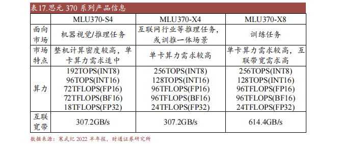 MLU 370-S4、MLU370-X4 和 MLU370-X 均基于思元 370 智能芯片的技术,通过 Chiplet 技术灵活组合产品的特性,可满足更多市场需求。