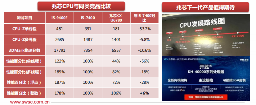 1)兆芯成立于2013年,获得x86授权较早,在早期安全可控项目中占据一定份额,但其产品主要是桌面端,且x86 IP授权来自威盛电子,架构较为落后使其性能产品受到一定影响,IP内核授权的自主性也较低。
