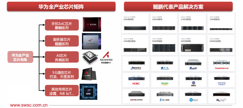 在一系列芯片矩阵中,华为致力于围绕“鲲鹏+昇腾”双引擎形成两大计算产业,其中鲲鹏计算产业是基于鲲鹏处理器的基础软硬件设施,行业应用及服务,涵盖从底层硬件、基础软件到上层行业应用的全产业链条,可为下游各大行业应用提供全面、完整、一体化信息化解决方案。