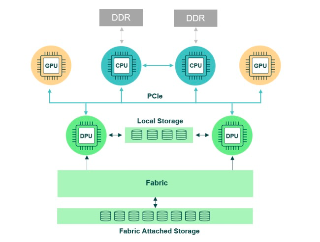 另一种 DPU依赖于众多低功率、Data-Efficient 内核和硬件加速引擎,以提供最高效和灵活的解决方案。