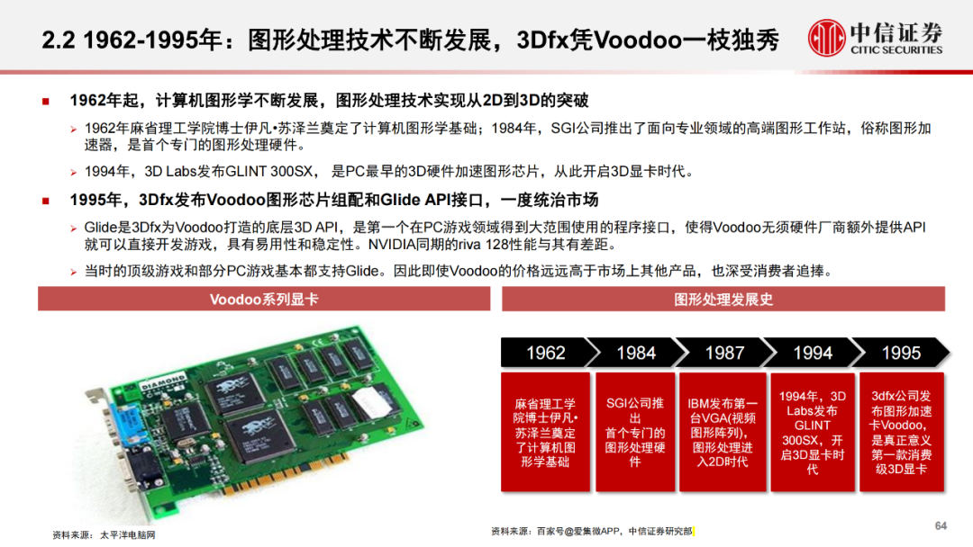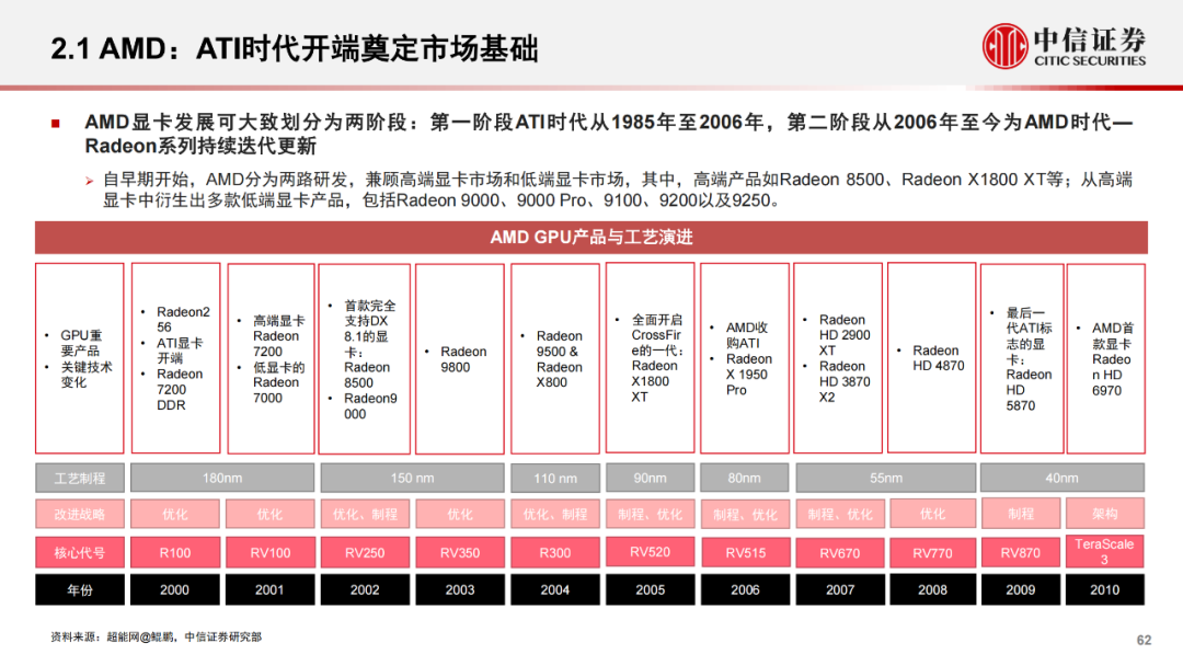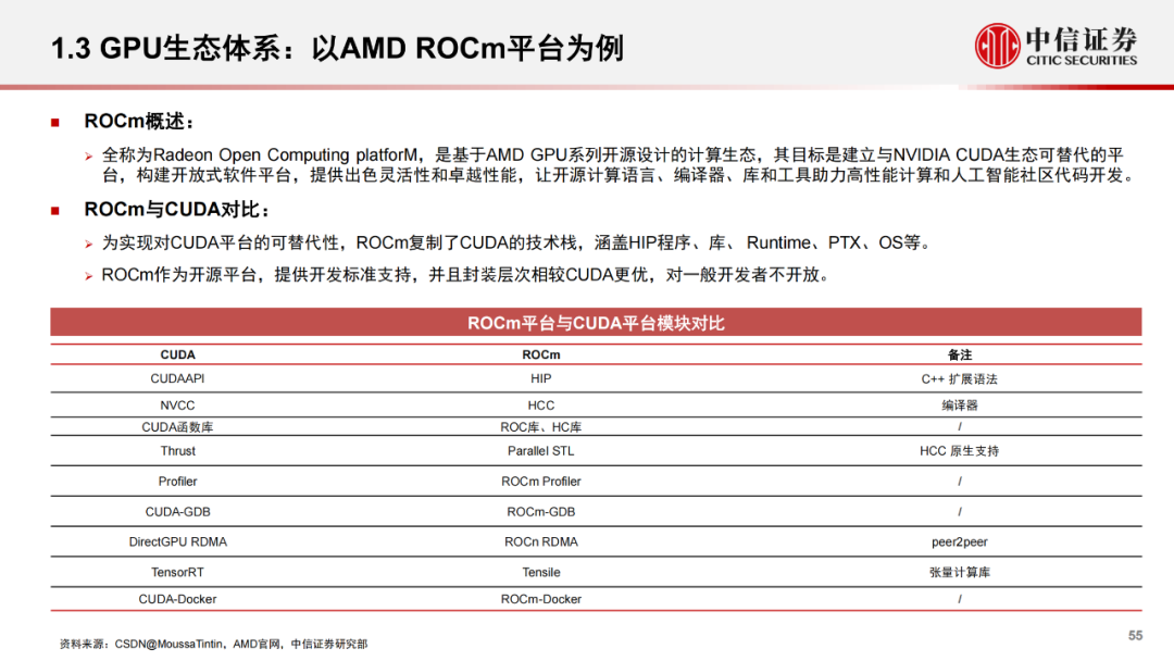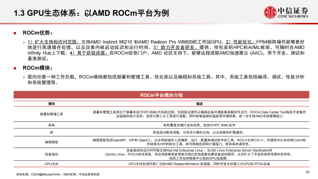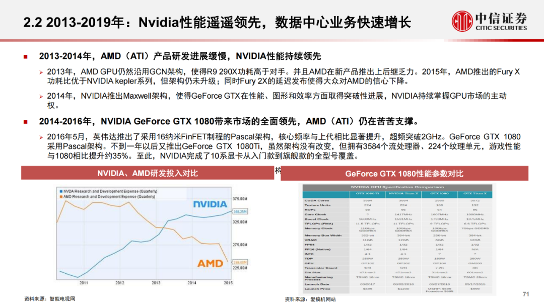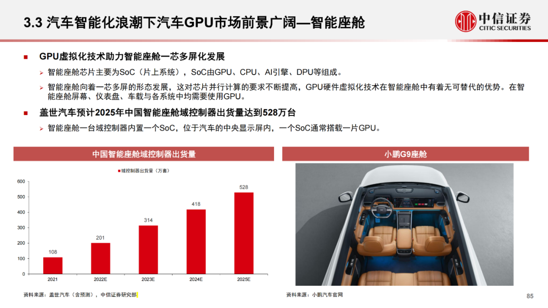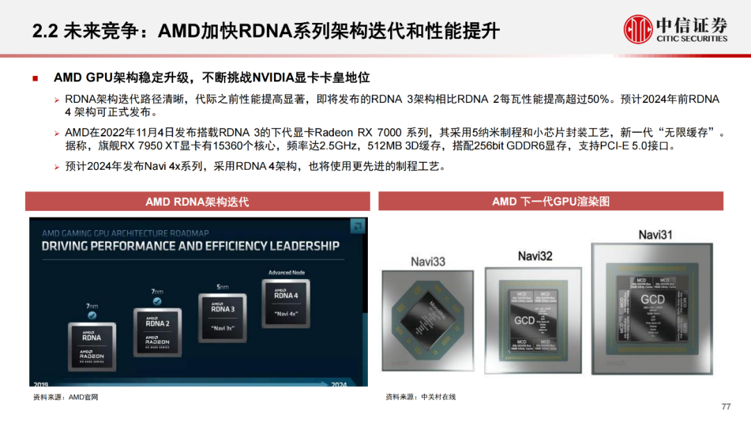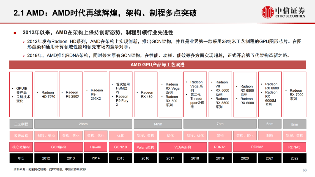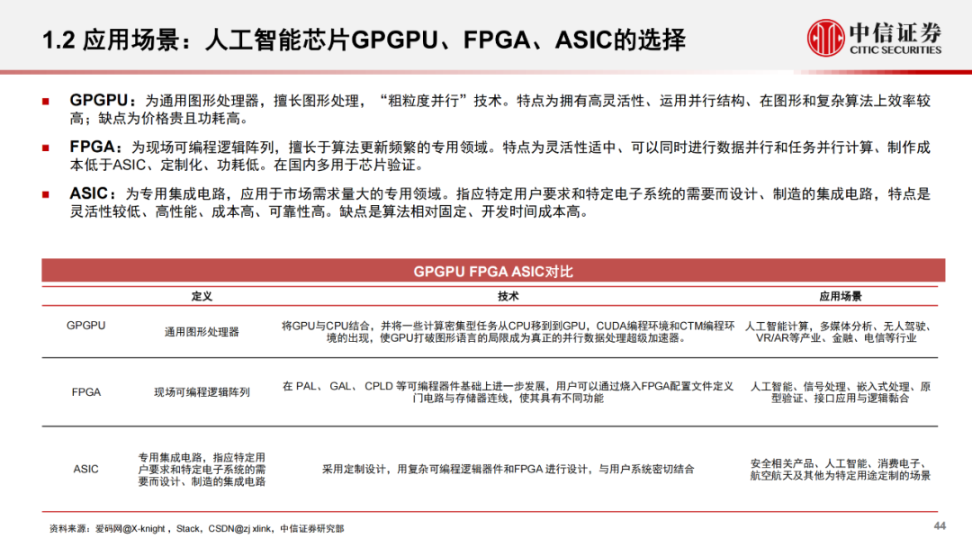 国内GPU厂商纷纷大力投入研发快速迭代架构,推动产业开放构建自主生态,加速追赶全球头部企业。国产替代需求持续释放叠加国际局势不确定性加剧,AI&数据中心、智能汽车、游戏等GPU需求有望高增,国产GPU迎来发展黄金期,我们看好国产GPU公司的发展与投资机遇。第一,我们从性能和生态2个维度构建了GPU完整的研究体系。1)性能:决定GPU是否“高效”,其中微架构/制程是影响GPU性能的核心要素。2)生态:CUDA构筑通用计算坚固壁垒。第二,提出在评估GPU性能的指标的重要性上:微架构、制程、流处理器数量、核心频率对GPU性能影响较大。我们详细梳理了GPU的微架构、制程、显存容量/位宽/带宽/频率、核心频率等各类性能参数及重要性程度,并利用“核心数*核心频率*2”公式对性能算力进行量化,揭示可用3DMark、MLPerf 等GPU软件跑分进行相关性能测试评估。第三,详细拆解了NVIDIA Fermi和Hopper两大典型微架构的具体硬件实现,在顶点处理、光栅化计算、纹理贴图、像素处理的图形渲染流水线上对Fermi架构进行了拆分;在指令接收、调度、分配、计算执行的通用计算流水线上对Hopper架构进行了简单易懂的描述,并指明更多、更专、更智能等未来架构升级迭代的方向。第四,明晰了生态是构建通用计算壁垒的基石。提出GPU研发难度在图形渲染硬件和通用计算软件生态层面,在IP、软件栈方面研发门槛较高,需要较长的积累,先发者优势明显。CUDA生态从2006年推出至今,经过不断发展完善,几乎已在行业生态内处于垄断地位。第五,深度复盘Nvidia/AMD(ATI)的产品迭代和竞争发展史,通过对NVIDIA长期保持领先和AMD(ATI)反超进行总结得出结论:架构创新升级和新兴领域前瞻探索是领跑GPU行业的关键。 第六,梳理和测算了国内GPU在AI&数据中心、智能汽车、游戏行业的市场空间和发展趋势。