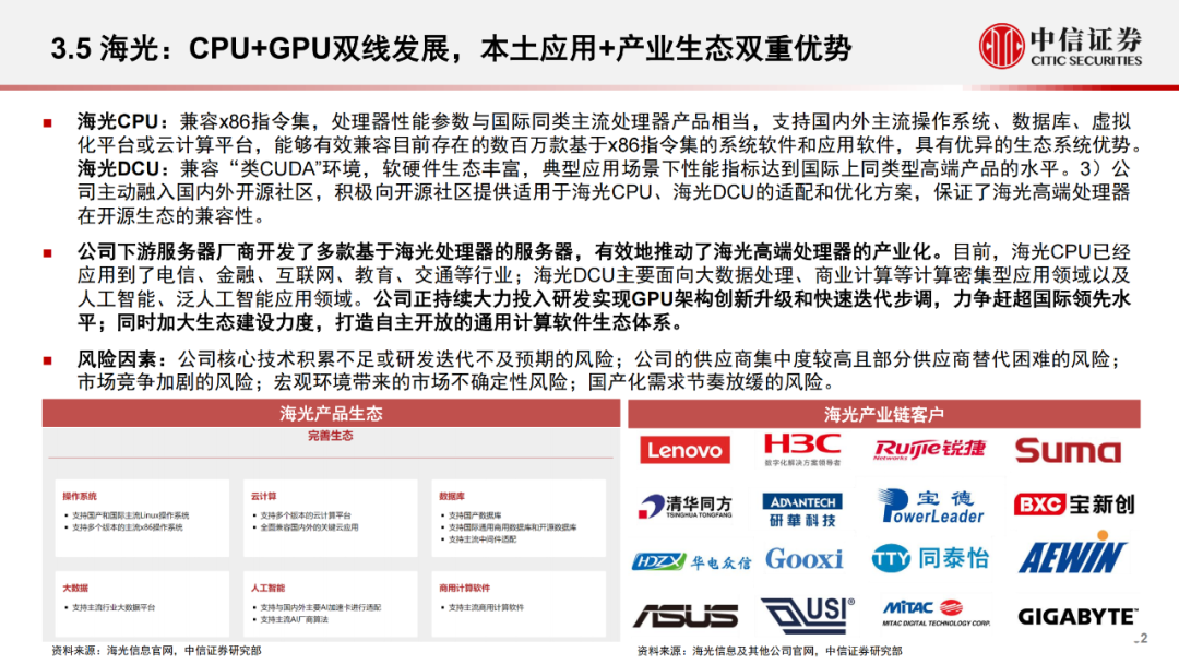 更多内容参考“中流击水:六大国产CPU厂商分析(2022)”、“央国企信创:基于信创体系的数字化转型(2022)”,“2022年国产服务器CPU研究框架”以及六大国产CPU分析。华为鲲鹏处理器介绍、鲲鹏计算产业发展白皮书、华为鲲鹏生态研究框架。