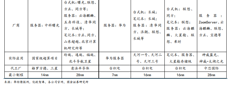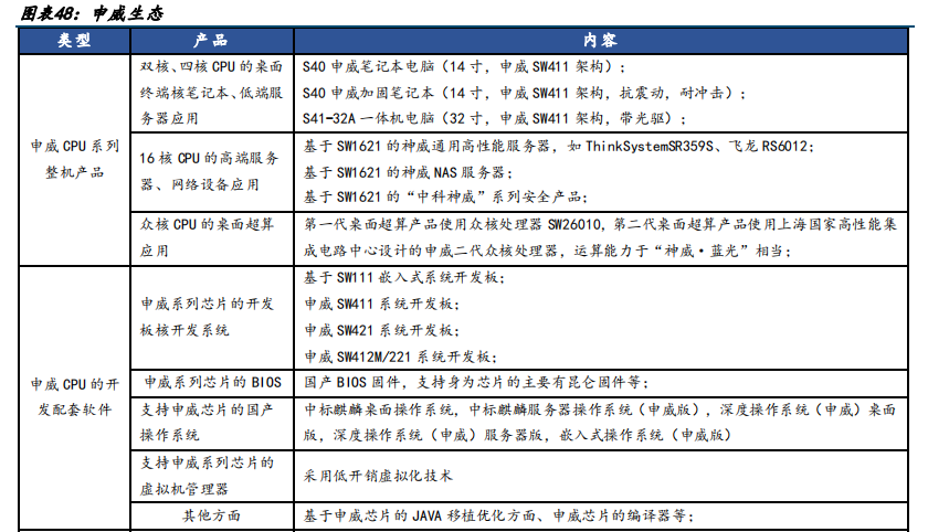 申威采用自研的申威 64 位指令集,重点应用于特种领域,努力实现在国防和网络安全领域芯片的自主可控。随着其产品技术的日益成熟,其生态也不断趋于完善。海思、飞腾均已经获得 ARMv8 永久授权,尽管 ARM 此前表态 ARMv9 架构不受美国出口管理条例约束,华为海思等国内CPU产商依然可获授权,但是ARMv9不再提供永久授权,采用 ARM 架构仍有长期隐患。