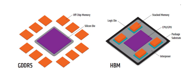 HBM(High Bandwidth Memory)意为高带宽存储器,是一种硬件存储介质,是高性能 GPU 的核心组件。HBM 具有高吞吐高带宽的特性,受到工业界和学术界的关注。它单颗粒的带宽可以达到 256 GB/s,远超过 DDR4 和 GDDR6。DDR4 是 CPU 和硬件处理单元的常用外挂存储设备,但是它的吞吐能力不足以满足当今计算需求,特别是在 AI 计算、区块链和数字货币挖矿等大数据处理访存需求极高的领域。GDDR6 也比不上 HBM,它单颗粒的带宽只有 64 GB/s,是HBM 的 1/4。而 DDR4 3200 需要至少 8 颗粒才能提供 25.6 GB/s 的带宽,是 HBM 的 1/10。