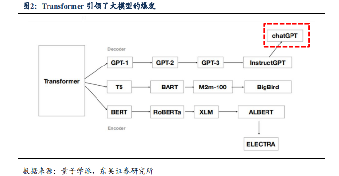 大模型的本质依旧是基于统计学的语言模型,“突现能力”赋予其强大的推理能力。当前几乎所有参数规模超过千亿的大语言模型都采取 GPT 模式。近些年来,大型语言模型研究的发展主要有三条技术路线:Bert 模式、GPT 模式以及混合模式。Bert 模式适用于理解类、做理解类、某个场景的具体任务,专而轻,2019 年后基本上就没有什么标志性的新模型出现;混合模式大部分则是由国内采用;多数主流大语言模型走的还是 GPT 模式,2022 年底在 GPT-3.5 的基础上产生了ChatGPT,GPT 技术路线愈发趋于繁荣。