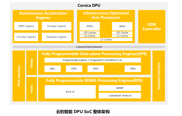 云豹智能是一家专注于云计算和数据中心数据处理器芯片(DPU)和解决方案的领先半导体公司。云豹智能 DPU SoC 是国内第一颗通用可编程 DPU 芯片,具备丰富的可编程性和完备的 DPU 功能,支持不同云计算场景和资源统一管理,优化数据中心计算资源利用率。