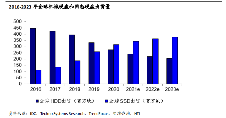 固态硬盘(SolidStateDrives,SSD)则是以闪存为存储介质的重要存储产品,是用固态电子存储芯片阵列制成的硬盘产品,由控制单元、存储单元(FLASH 芯片、DRAM 芯片)及固件组成,可广泛应用于移动终端、笔记本电脑、台式机、服务器和数据中心等诸多领域。