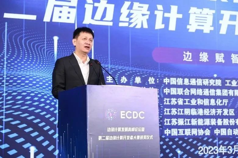 2023年3月23日,由中国信息通信研究院(简称“中国信通院”)、工业互联网产业联盟(简称“AII”)、边缘计算产业联盟(简称“ECC”)共同主办的边缘计算发展高峰论坛暨第二届边缘计算开发者大赛颁奖仪式在江苏省江阴市举行。工业和信息化部信息通信管理局业务资源处处长赵阳,中国信通院总工程师敖立,江苏省工业和信息化厅二级巡视员常如平,无锡市委常委、江阴市委书记许峰等领导出席活动并致辞。中国信通院技术与标准研究所副所长汤立波主持本次活动。
