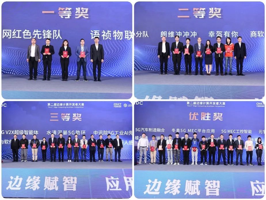 赵阳指出,边缘计算作为IT、CT、DT以及行业OT的融合交汇点,是打通工业互联网赋能行业“最后一公里”的基础支撑技术,对促进工业互联网数据实时处理、高效利用和安全保护具有重要意义。他表示,下一阶段应重点围绕边缘计算与工业互联网协同部署、加快关键产品研发以及促进新场景新模式应用等方面加大力度推动边缘计算创新发展。敖立在致辞中表示我国高度重视边缘计算技术研究和应用探索,《“十四五”信息通信行业发展规划》明确提出建设面向特定场景的边缘计算设施,深化边缘计算在垂直行业和领域的拓展。中国信通院积极把握边缘计算发展重要机遇,组织边缘计算标准件计划、边缘计算开发者大赛等产业旗舰活动,携手各方推动边缘计算规模化部署,赋能千行百业。常如平在致辞中表示,江苏正在加快构建多层次计算基础设施体系,着力推进边缘计算建设发展,已取得了阶段性成效。下一步,江苏省工信厅将以本次大会为契机,紧抓数字经济发展的时代机遇,准确把握边缘计算、5G、人工智能等新一代信息技术发展新趋势,以更加务实的举措,持续推动边缘计算融合发展取得新的更大成效。许峰指出,边缘计算是连接实体经济和数字经济的关键技术,也是江阴加快制造业转型升级的技术资源,本次活动在江阴举办,对做强数字经济,发展边缘计算有了新的憧憬。他表示,江阴数字化转型需求强劲,希望参赛优秀团队与江阴一起投身数字经济新领域,奋战边缘计算新赛道。江阴市委市政府将加大鼓励扶持力度,加快产业生态培育,为各方深度合作和产业转型升级赋能加持。随后汤立波以“边缘计算发展态势展望与思考”为主题,介绍了边缘计算国内外政策环境、标准化进展及产业布局等情况,总结边缘计算四大发展趋势及面临的三大挑战。论坛同期举办了第二届边缘计算开发者大赛颁奖仪式,参会领导嘉宾为第二届大赛获奖团队和选手颁奖。中国信通院技术与标准研究所产业互联网研究部主任黄颖主持主题演讲环节。英特尔公司网络与边缘事业部副总裁、视频事业部总经理陈伟、江阴长江港口综合物流园管委会主任周英、中国联通5G融合创新中心区域拓展部总经理程骁、华为云IoT服务产品部CTO张宗锋、南京理工大学教授李骏、大赛一等奖团队围绕边缘计算技术应用实践、江阴临港产业集群发展战略等主题进行了分享。