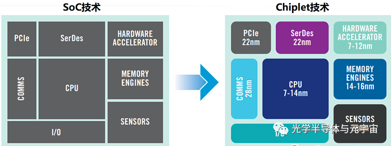 Chiplet将满足特定功能的裸芯片通过Die-to-Die内部互联技术,实现多个模块芯片与底层基础芯片的系统封装,实现一种新形势的IP复用。Chiplet将是国内突破技术封锁,布局先进制程的重要方案。