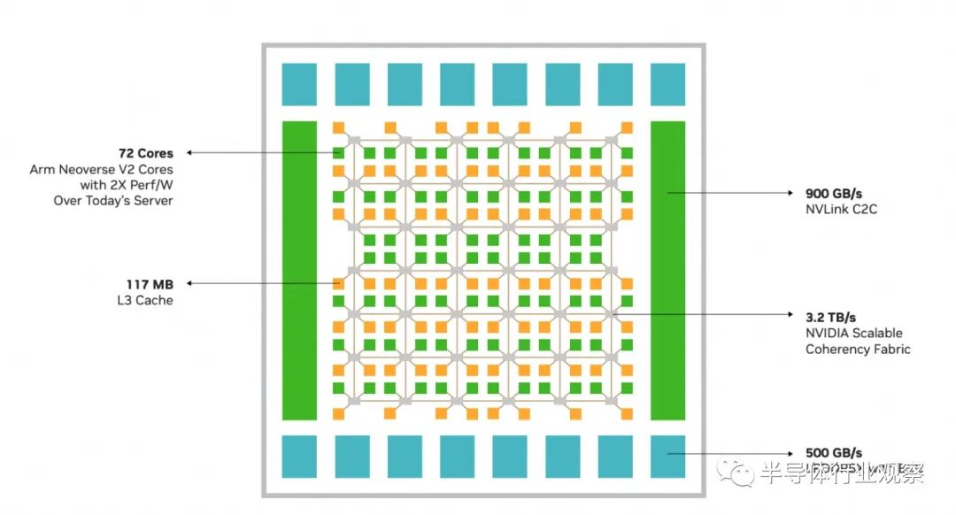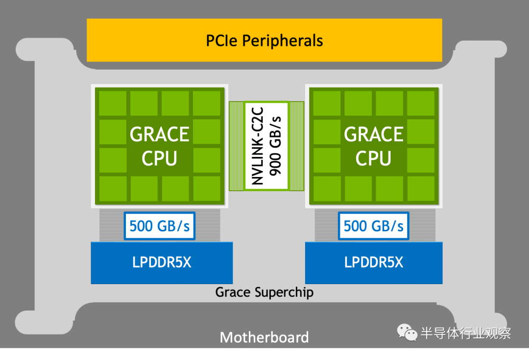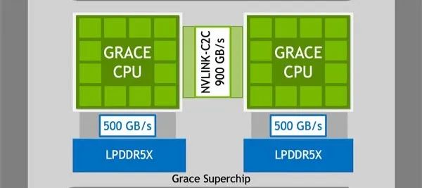 NVIDIA Grace Hopper Superchip将节能、高带宽的 NVIDIA Grace CPU 与功能强大的 NVIDIA H100 Hopper GPU 结合使用 NVLink-C2C,以最大限度地提高强大的高性能计算 (HPC) 和巨型 AI 工作负载的能力。NVIDIA Grace CPU 超级芯片是使用两个通过 NVLink-C2C 连接的 Grace CPU 构建的。该超级芯片建立在现有 Arm 生态系统的基础上,为 HPC、要求苛刻的云工作负载以及高性能和高能效的密集基础设施创建了首个毫不妥协的 Arm CPU。 在本文中,您将了解 NVIDIA Grace CPU 超级芯片以及提供 NVIDIA Grace CPU 性能和能效的技术。有关详细信息。图 1. 与双插槽 Milan 7763 CPU 相比,NVIDIA Grace CPU Superchip 上应用程序的性能和节能效果NVIDIA Grace CPU 超级芯片通过将旗舰双路 x86-64 服务器或工作站平台提供的性能水平集成到单个超级芯片中,代表了计算平台设计的一场革命。高效的设计可在较低的功率范围内实现 2 倍的计算密度。 NVIDIA Grace CPU 旨在提供高单线程性能、高内存带宽和出色的数据移动能力,每瓦性能领先。NVIDIA Grace CPU Superchip 结合了两个连接超过 900 GB/s 双向带宽 NVLink-C2C 的 NVIDIA Grace CPU,提供 144 个高性能 Arm Neoverse V2 内核和高达 1 TB/s 带宽的数据中心级 LPDDR5X 内存,带纠错码( ECC)内存。 图2. 具有 900 GB/s NVLink-C2C 的 NVIDIA Grace CPU 超级芯片为了扩展到 144 个 Arm Neoverse V2 内核并在两个 CPU 之间移动数据,NVIDIA Grace CPU Superchip 需要在 CPU 之间建立高带宽连接。NVLink C2C 互连在两个 NVIDIA Grace CPU 之间提供高带宽直接连接,以创建 NVIDIA Grace CPU 超级芯片。 使用 NVIDIA Scalable Coherency Fabric 扩展内核和带宽