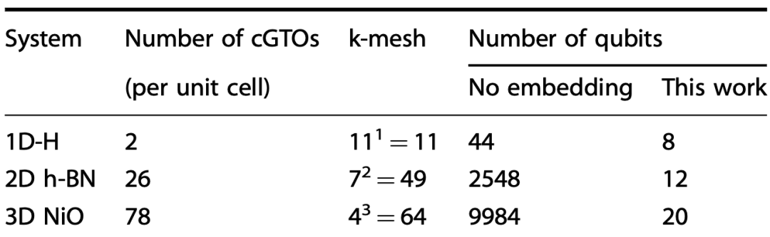 表1:文中所研究的每个系统的量子模拟所需要比特数。